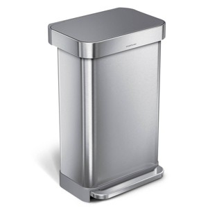 simplehuman 45L Kitchen Step Trash Can with Liner Pocket Stainless Steel with Fingerprint Proof Finish, Gray Plastic Soft Close Lid