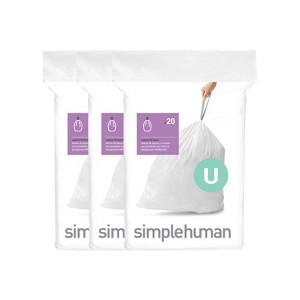 simplehuman 50-80L Code U Custom Fit Kitchen Trash Bag Liners 3 Quick-Dispense Packs - 60ct: Tall Kitchen, Drawstring, White