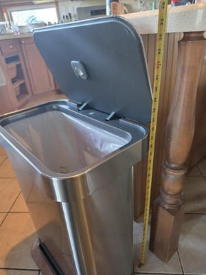 A: Hello Sandi, Our 55 litre rectangular step can stands 36" tall with the lid fully open. Warm regards, simplehuman