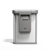 Experience the future of waste management with this 58L rectangular sensor can featuring both voice and motion control technology. This innovative trash can responds to voice commands through advanced voice recognition that works even in noisy kitchens. The motion sensor offers an alternative hands-free option – perfect when your hands are full or messy from cooking. The rectangular shape maximizes capacity while fitting neatly against walls and in tight spaces. At 58 liters, it holds more trash with fewer trips to the outdoor bin. The wide opening accommodates pizza boxes, food containers, and awkward items with ease. The touch-free operation reduces the spread of germs in your home. The brushed stainless steel surface features an invisible antimicrobial coating that actively resists bacteria growth throughout the day. Each can includes a natural odorsorb pod that neutralizes trash odors for up to 45 days. The pod fits discreetly under the lid, working silently to keep your kitchen fresh. Use with Code Q custom-fit liners for optimal performance. These extra-thick liners feature reinforced double seams that prevent rips and leaks, even when packed full. The custom fit eliminates unsightly bag overhang. Add the compost caddy (sold separately) that docks to the side of the can for convenient organic waste separation. 58L rectangular sensor can.