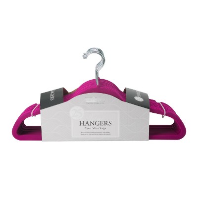 This velvet hanger is an elegant way to create both stylish and functional clothing storage. beautiful, soft and durable, this velvet suit hanger is contoured to keep suits, shirts, dresses and jackets wrinkle-free. This 25-pack of anti-slip hangers features a velvet coating that is gentle on delicate garments to prevent damage. The velvet coating also provides a non-slip surface that holds fabrics in place. This hanger features durable contruction that provides strength and reliability, providing you lasting use. Slim design optimizes closet space.
