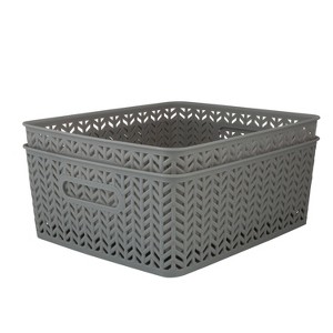 Simplify 2pk Resin Herringbone Storage Tote Medium Gray