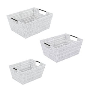 Simplify 3pc Rattan Tote Set with Sterling Silver Handles White: Decorative Storage Bins, No Assembly Required