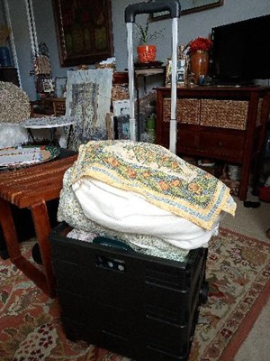 This rolling box folds to only a few inches wide for stowing away and is easy to open and close. The small wheels make it a little difficult to pull up steps. It seems sturdy, but I've only used it a few times so far so I'm not sure how it holds up after repeated use.