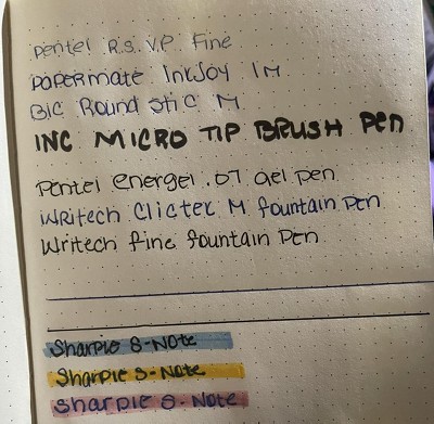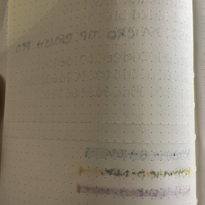 Paper is very thin. Ghosting with a roller ballpoint pen, gel pen, and bleed through with fountain pen medium nib. Not happy with this purchase but have to keep it. Dot grid area is 5” W and 7.25” H with a .5” gully top and bottom. Dots: 25 horizontal and 36 vertical if that helps someone else out. These details weren’t included in the description and would have made it easier to choose another brand/journal. Standard A5 stencil is too large and will need to revamp a bit to make it work. The “hard cover” bends easily under basic writing pressure more so when drawing lines. For the price, expected more than a typical $1/1.25 store brand notebook.