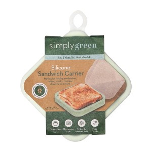 Simply Green sandwich carrier is made from eco-friendly plastics and high quality silicone. Offers a durable and resuable alterative to disposable plastic bags. Dishwasher and microwave safe. Fridge and freezer sale. BPA free. Perfect for holding sandwiches, bread, snacks, cookies, desserts and more. Measures 6" x 6" square. The hard frome provides structure while fully wrapping silicone skin keeps food fresh from elements.