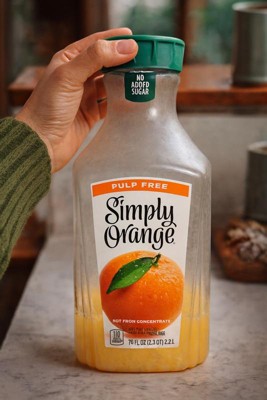For Simply Orange Pulp Free, we carefully select real, ripe oranges and turn them into a deliciously simple pulp-free orange juice. Not from concentrate for a deliciously fresh-squeezed taste.