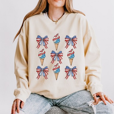 Product Name: Simply Sage Market Blue and White Star Bow Coquette Lightweight Garment Dyed Sweatshirt - S - Ivory