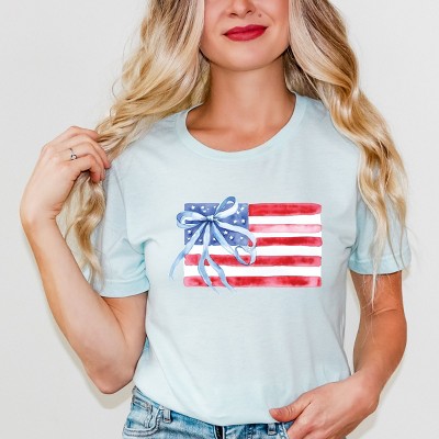 Celebrate the all-American charm with our 'Coquette America Cherries' print. Featuring vibrant red cherries against a backdrop of stars and stripes, this design exudes a playful and flirty vibe that is perfect for the summer season. Inspired by retro pin-up style, this print is a nod to classic Americana with a modern twist. Whether you're looking to add a touch of femininity to your wardrobe or simply love all things vintage, this design is sure to make a statement wherever you go. Introducing our Unisex Short Sleeve Tee, crafted from soft, high-quality materials for a comfortable fit. Featuring a trendy graphic design, this tee is perfect for adding a stylish touch to any outfit.