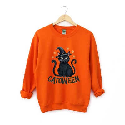 Embrace the spooky season with this Catoween Cat print. The design features a mysterious black cat with glowing eyes. Perfect for anyone who loves all things Halloween, this design will add a touch of magic to your fall wardrobe. Whether you're attending a Halloween party or just love the festive season, this design is sure to impress. Get into the spirit of trick-or-treating and embrace the haunted vibes with this Halloween Cat print on your favorite products. Stay cozy and stylish in this Adult fit, soft and comfortable sweatshirt. Featuring a high-quality graphic design, this trendy piece is perfect for any casual occasion. Size up for an oversized look.