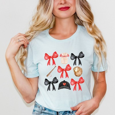 Embrace your inner coquette with this whimsical design featuring a collection of charming bows in a chart format, accented with stars and stripes for a modern twist. The delicate and feminine pattern is perfect for those who love a girly and playful aesthetic. The dynamic design is sure to stand out and make a statement wherever you go. Add a touch of flair to your wardrobe with this eye-catching print on demand design. Introducing our Unisex Short Sleeve Tee, crafted from soft, high-quality materials for a comfortable fit. Featuring a trendy graphic design, this tee is perfect for adding a stylish touch to any outfit.