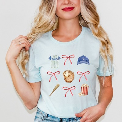 Product Name: Simply Sage Market Coquette Bows And USA Strawberries Short Sleeve Tee - XS - Ice Blue