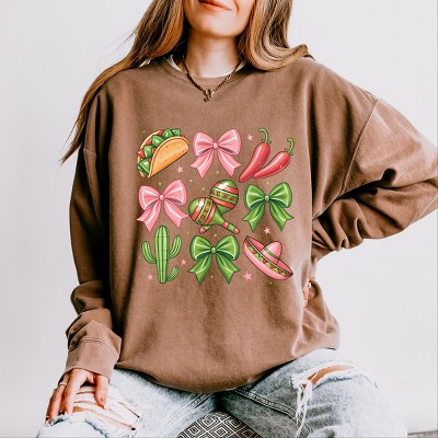 Product Name: Simply Sage Market Coquette Orange Bow Pumpkin Season Lightweight Garment Dyed Sweatshirt - XL - Espresso