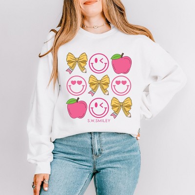 Product Name: Simply Sage Market Coquette Orange Checker Bow Sweatshirt - L - White
