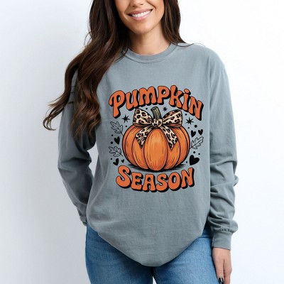 Simply Sage Market Coquette Pumpkin Season Leopard Garment Dyed Long Sleeve - 1 of 4