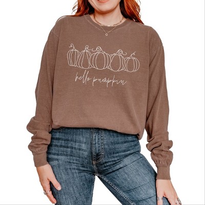 Product Name: Simply Sage Market Cow Pumpkin Coquette Distressed Garment Dyed Long Sleeve - M - Grey