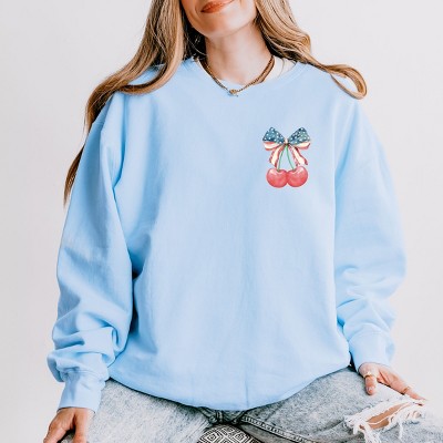 Product Name: Simply Sage Market Embroidered Baseball Mom Lightweight Garment Dyed Sweatshirt - L - Hydrangea