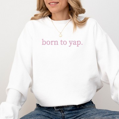 Product Name: Simply Sage Market Embroidered Born To Yap Sweatshirt - M - White