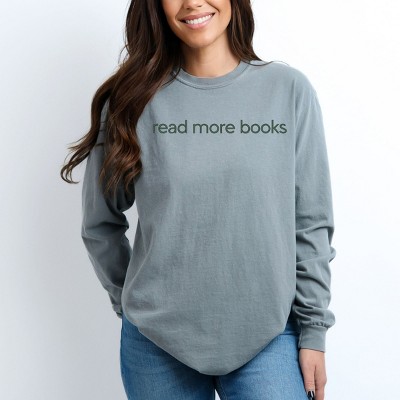 Simply Sage Market Embroidered I Closed My Book To Be Here Garment Dyed Long Sleeve - 1 of 4