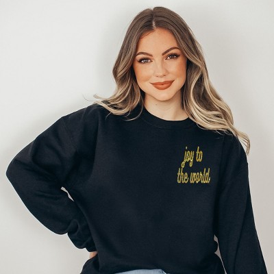 Spread some holiday cheer with this beautifully embroidered design that reads 'Joy To The World' in bold cursive. The elegant script adds a touch of sophistication to any product it adorns, making it the perfect addition to your holiday wardrobe or a thoughtful gift for a loved one. Embrace the spirit of the season with this delightful and uplifting print! Stay cozy and stylish in this Adult fit, soft and comfortable sweatshirt. Featuring a high-quality graphic design, this trendy piece is perfect for any casual occasion. Size up for an oversized look.