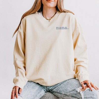 The 'Embroidered Mama' design is a beautiful and stylish homage to mothers everywhere. Featuring intricate embroidered details, this design is perfect for moms who want to showcase their motherhood pride in a chic and fashionable way. Whether you're a new mom, a seasoned mother, or just someone who appreciates the power of motherhood, this design is sure to make a statement. Show your love and admiration for all the mother figures in your life with this elegant and sentimental design. Makes for a great gift for Mother's Day or any special occasion. Stay cozy and stylish in this Adult fit, soft and comfortable sweatshirt. Featuring a high-quality graphic design, this trendy piece is perfect for any casual occasion. Size up for an oversized look.