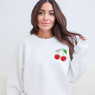 Indulge in the sweet charm of these embroidered Mon Cherie cherries design. The intricately stitched cherries exude a vintage vibe with a touch of modern elegance. Perfect for those who adore fruit motifs and appreciate detailed embroidery. This design adds a pop of color and whimsy to any product it graces. Whether you're a fan of cherries or simply love unique designs, this embroidered Mon Cherie cherries print is sure to delight. Stay cozy and stylish in this unisex fit, soft and comfortable sweatshirt. Featuring a high-quality graphic design, this trendy piece is perfect for any casual occasion. Size up for an oversized look.
