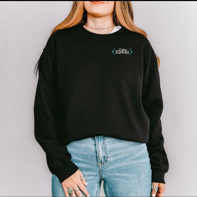 Indulge in the luxury of the Embroidered Oahu Hawaii Stars design, inspired by the breathtaking night sky of Oahu. The intricate embroidery captures the beauty of the stars twinkling in the tropical island paradise, creating a mesmerizing and sophisticated look. Perfect for those who crave a touch of elegance and the essence of a summer vacation. Whether you're strolling along the beach or enjoying a night out, this design will add a touch of glamour to any outfit. Embrace the beauty of Oahu with this stunning print-on-demand design. Stay cozy and stylish in this unisex fit, soft and comfortable sweatshirt. Featuring a high-quality graphic design, this trendy piece is perfect for any casual occasion. Size up for an oversized look.