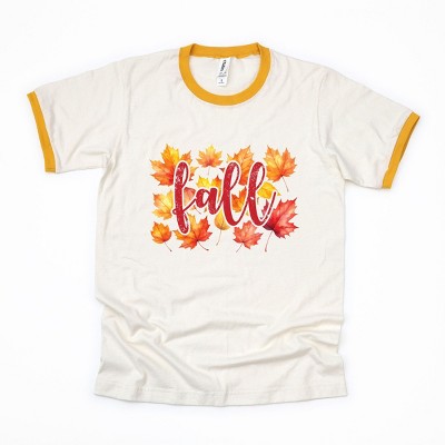 Product Name: Simply Sage Market Fall Vibes Pumpkin And Leaves Ringer Tee - 2XL - Vintage Mustard