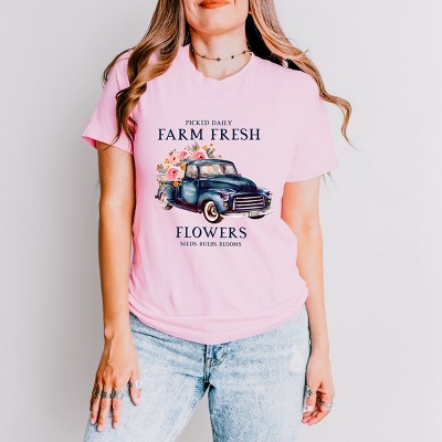 Product Name: Simply Sage Market Farm Fresh Flowers Truck Short Sleeve Tee - S - Ice Blue