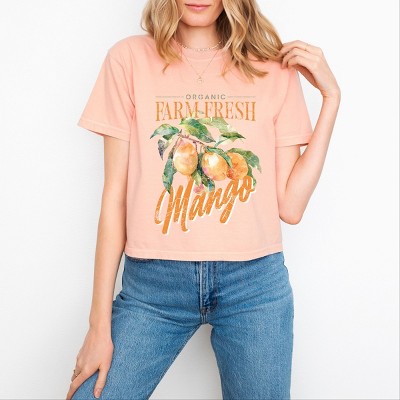 Capture the essence of farm fresh oranges with this stunning watercolor design. The vibrant orange hues and delicate brush strokes create a sense of freshness and vitality, perfect for adding a pop of color to your wardrobe. Embrace the joy of juicy oranges and enjoy a slice of rural living with this dynamic and eye-catching print-on-demand design. Elevate your street style with our trendy Boxy Crop Top. Garment dyed for a unique look, this unisex graphic tee features a boxy fit and shorter length for a cropped silhouette that is trendy and comfortable.