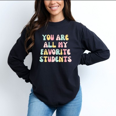 The 'Favorite Students Colorful' design is perfect for anyone who loves bright and vibrant colors. This playful and dynamic print features a pattern of diverse students in various poses, making it a fun and eye-catching addition to your wardrobe. Whether you're a teacher looking to show appreciation for your students or a student looking to showcase your love for learning, this design is sure to bring a smile to everyone's face. Stand out in style with this unique and energetic print that celebrates the joy of education and youth. Introducing our trendy Garment Dyed Tee. Unisex fit with a vintage feel that improves with wear. Made from high-quality materials and featuring a unique print. Upgrade your wardrobe with this timeless piece.