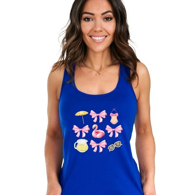 Stay trendy all summer long with our women's fitted racerback tank. Perfect for everyday wear, this tank features a stylish curved hem and a graphic print. Embrace the heat in style with this must-have piece for the season.
