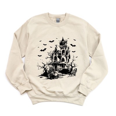 Product Name: Simply Sage Market Haunted House Pumpkins And Bats Lightweight Garment Dyed Sweatshirt - M - Ivory