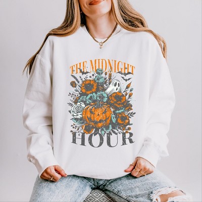 Product Name: Simply Sage Market Haunted House Pumpkins And Bats Lightweight Garment Dyed Sweatshirt - XL - White