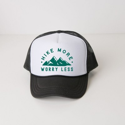 Simply Sage Market Hike More Worry Less Mountains Adult Foam Trucker Hat - One Size Fits Most - White/Black