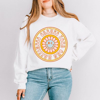 Product Name: Simply Sage Market Makes You Happy Flowers Sweatshirt - S - White