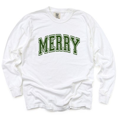 Simply Sage Market Merry Varsity Thick Outline Garment Dyed Long Sleeve - 1 of 4