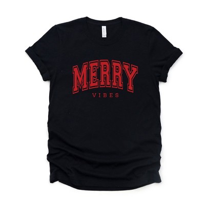 Product Name: Simply Sage Market Merry Vibes Varsity Thick Outline Short Sleeve Tee - M - Black