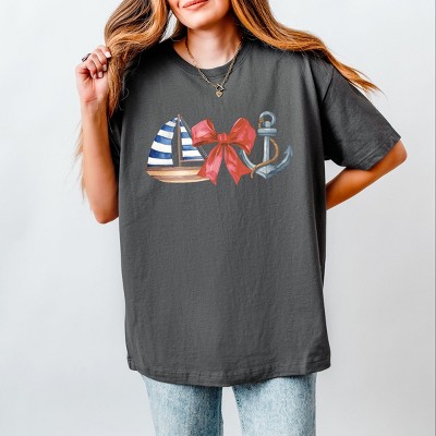 Celebrate American pride with the Patriotic America Stacked Coquette design. This bold and vibrant design features a stacked arrangement of stars, stripes, and the American flag colors of red, white, and blue. Perfect for anyone looking to show their love for the USA in a stylish and modern way. The graphic design is eye-catching and sure to make a statement wherever you go. Wear this design and you'll be sure to stand out and show your patriotic spirit. Experience the perfect blend of trendy and vintage with our Heavyweight Graphic Tee. Designed for a relaxed and boxy fit, this unisex tee is perfect for streetwear enthusiasts. Made with heavyweight fabric, it is both comfortable and durable for all-day wear. Model sized up to a large for an oversized look.