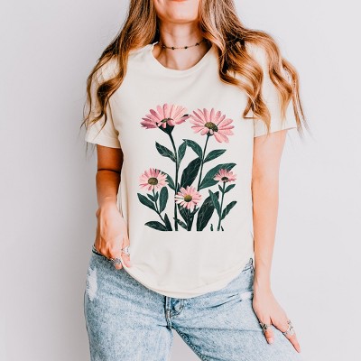 Product Name: Simply Sage Market Pink Daisies Watercolor Garment Dyed Tee - S - Ivory