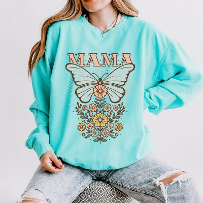 Simply Sage Market Pink Daisies Watercolor Lightweight Garment Dyed Sweatshirt - L - Chalky Mint