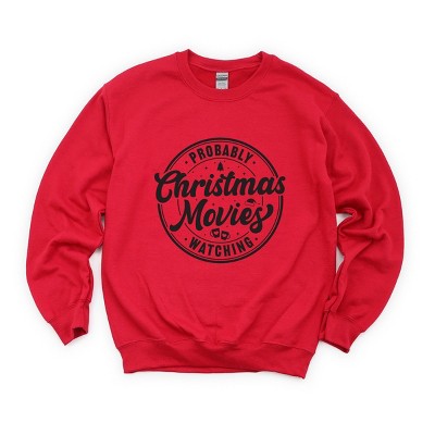 Product Name: Simply Sage Market Probably Watching Christmas Movies Sweatshirt - L - Cardinal