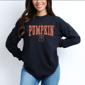Product Name: Simply Sage Market Pumpkin Spice Varsity Garment Dyed Long Sleeve - S - Black