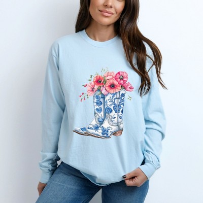 Simply Sage Market Ripe & Ready Peaches Garment Dyed Long Sleeve - 2XL - Chambray