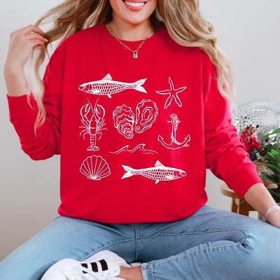 Product Name: Simply Sage Market S.W.Smiley Black And White Drip Garment Dyed Long Sleeve - S - Red