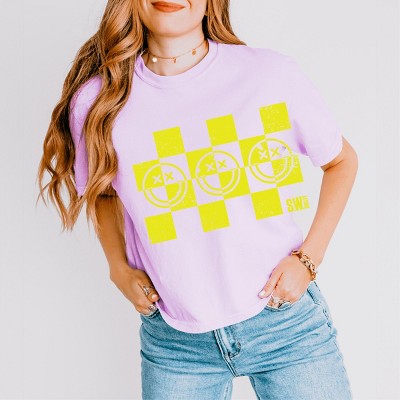 Product Name: Simply Sage Market S.W.Smiley Checkered X Face Boxy Crop Top - L - Orchid