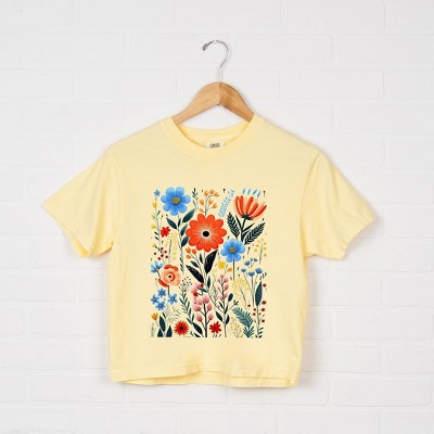 Embrace the power of positivity with the S.W.Smiley Create Your Own Happiness Flower design. This cheerful and vibrant print features a beautiful flower with the message 'Create Your Own Happiness' in a playful font. Let this design inspire you to always find joy in every moment and spread positivity wherever you go. Perfect for those who want to add a pop of color and motivation to their everyday life. Get creative and make it your own by customizing it on a variety of dynamic products. Choose happiness with this delightful and uplifting design! Elevate your street style with our trendy Boxy Crop Top. Garment dyed for a unique look, this adult fit graphic tee features a boxy fit and shorter length for a cropped silhouette that is trendy and comfortable.