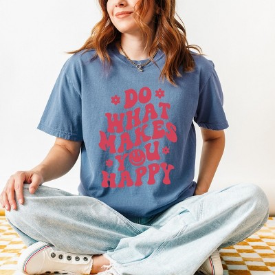 Product Name: Simply Sage Market S.W.Smiley Create Your Own Happiness Flower Garment Dyed Tee - S - Blue Jean
