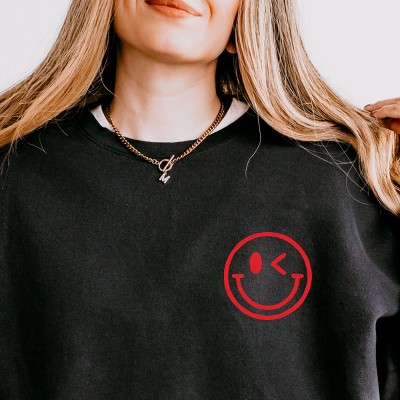 Add a touch of playful charm to your outfit with the S.W.Smiley Embroidered Simple Wink Bold design. This fun and modern design features a bold winking smiley face that is sure to make a statement wherever you go. The embroidered details add a touch of sophistication to the overall look, making it a versatile piece that can be dressed up or down. Give your wardrobe a trendy update with this stylish and unique design that is perfect for any fashion lover. Elevate your style with this trendy, Adult fit Garment Dyed Sweatshirt. The vintage feel only improves with wear, made from high-quality materials and featuring a unique print. Lightweight yet cozy, this piece is the perfect addition to your wardrobe.
