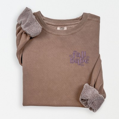 Product Name: Simply Sage Market S.W.Smiley Embroidered Simple Wink Bold Lightweight Garment Dyed Sweatshirt - XL - Espresso